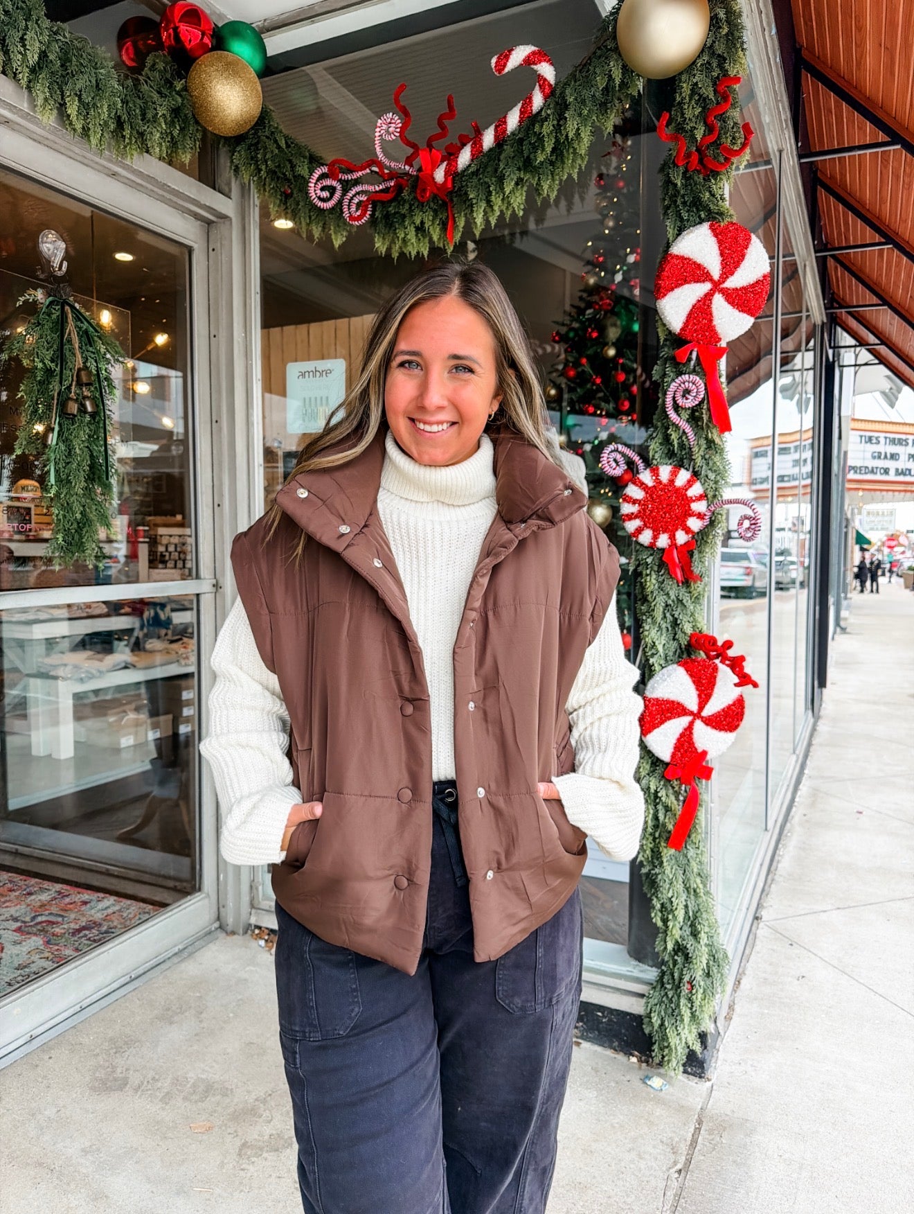 With its plush padding, easy snap-button front, and relaxed fit, this vest brings that perfect blend of comfort and street-chic style. Wear it over your favorite sweaters for an instantly elevated, layered look.