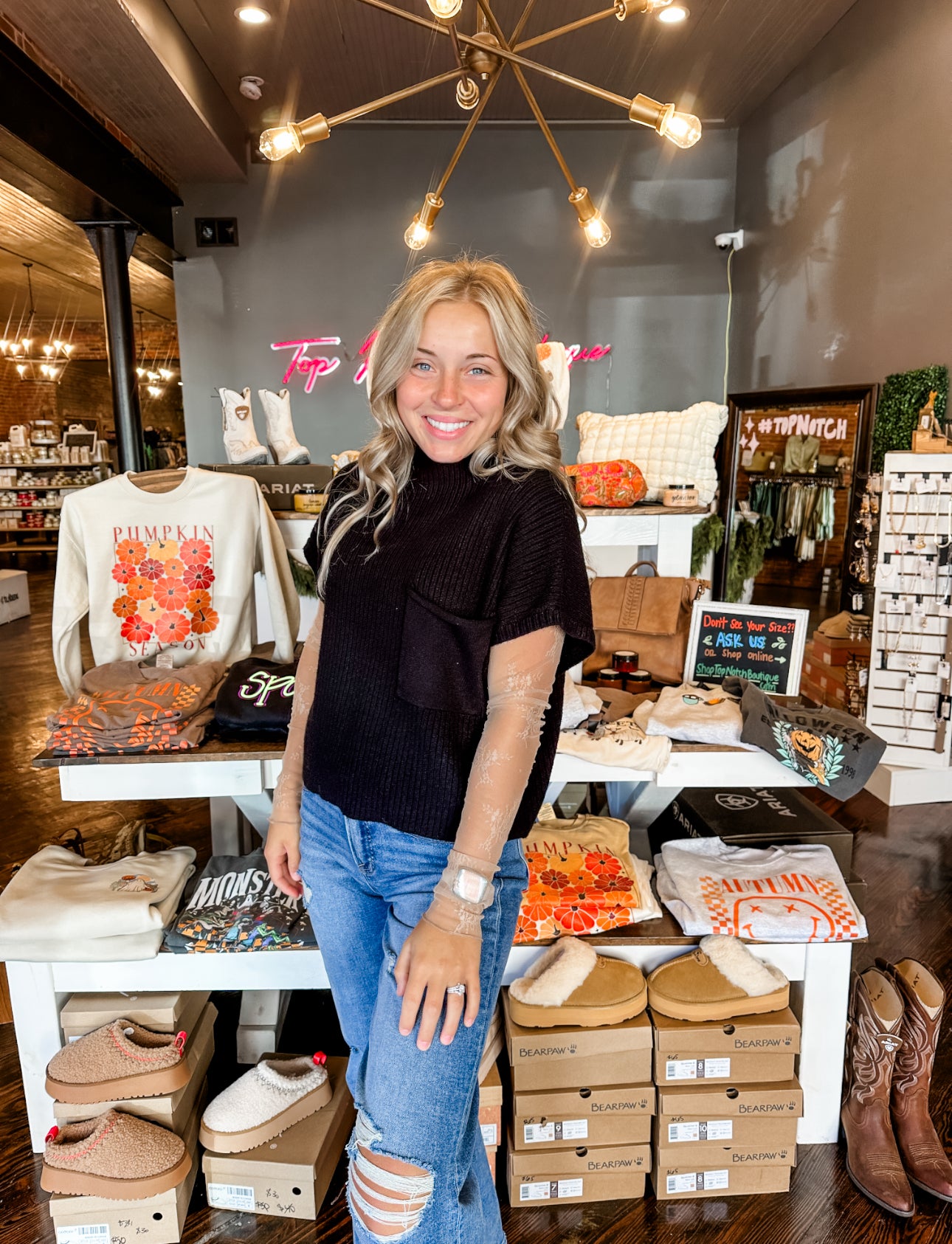 Your new go-to for chilly mornings and casual days out! The Coffee Run Sweater by Blu Pepper combines an easy, relaxed fit with feminine lace mesh sleeves that elevate your everyday look. Soft ribbed knit fabric keeps you cozy, while the mock neck and front pocket add that effortlessly chic touch.