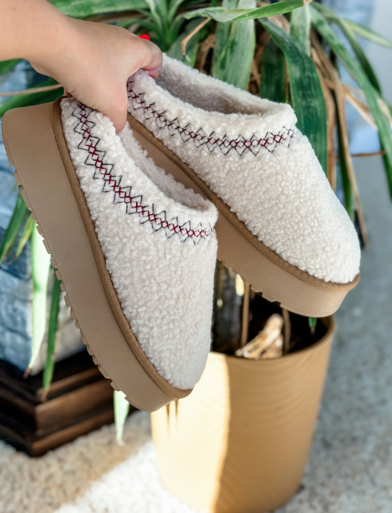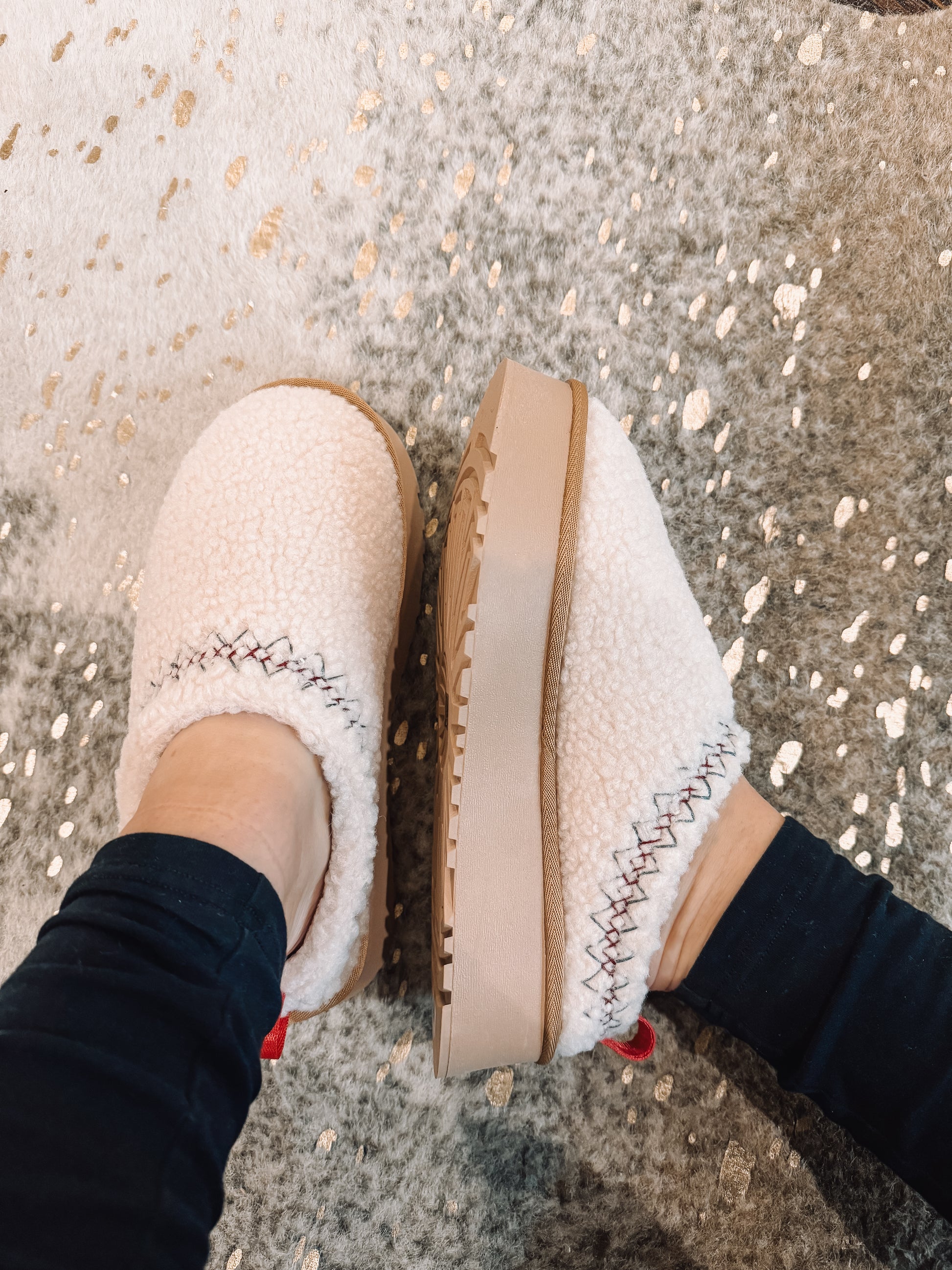 Stay trendy and warm this season with our Chill Mood Sherpa Slippers! This is not a want, but a need! Super soft and unbelievably warm, you'll love snuggling up your feet in these babies. We recommend sizing up.