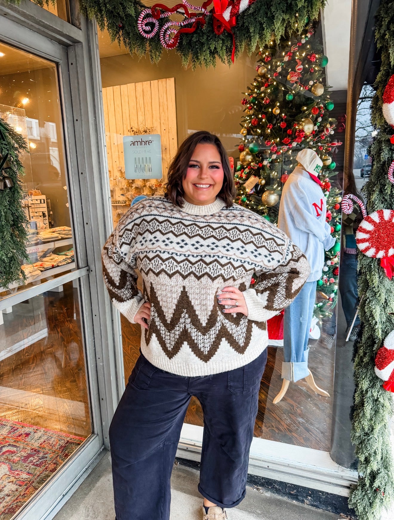 Your new go-to for all things cozy season. The Lodge Knit Sweater features a timeless fair isle pattern in earthy tones that give total cabin-core vibes. Crafted with a soft, wool-blend knit that’s warm without the itch, this sweater is perfect for fireside nights, winter markets, or chilly weekend getaways.