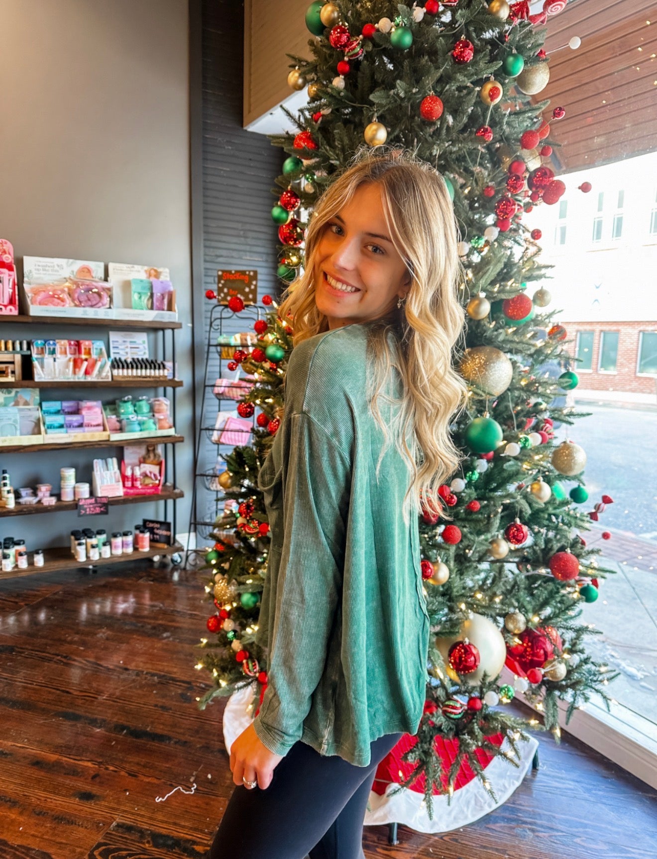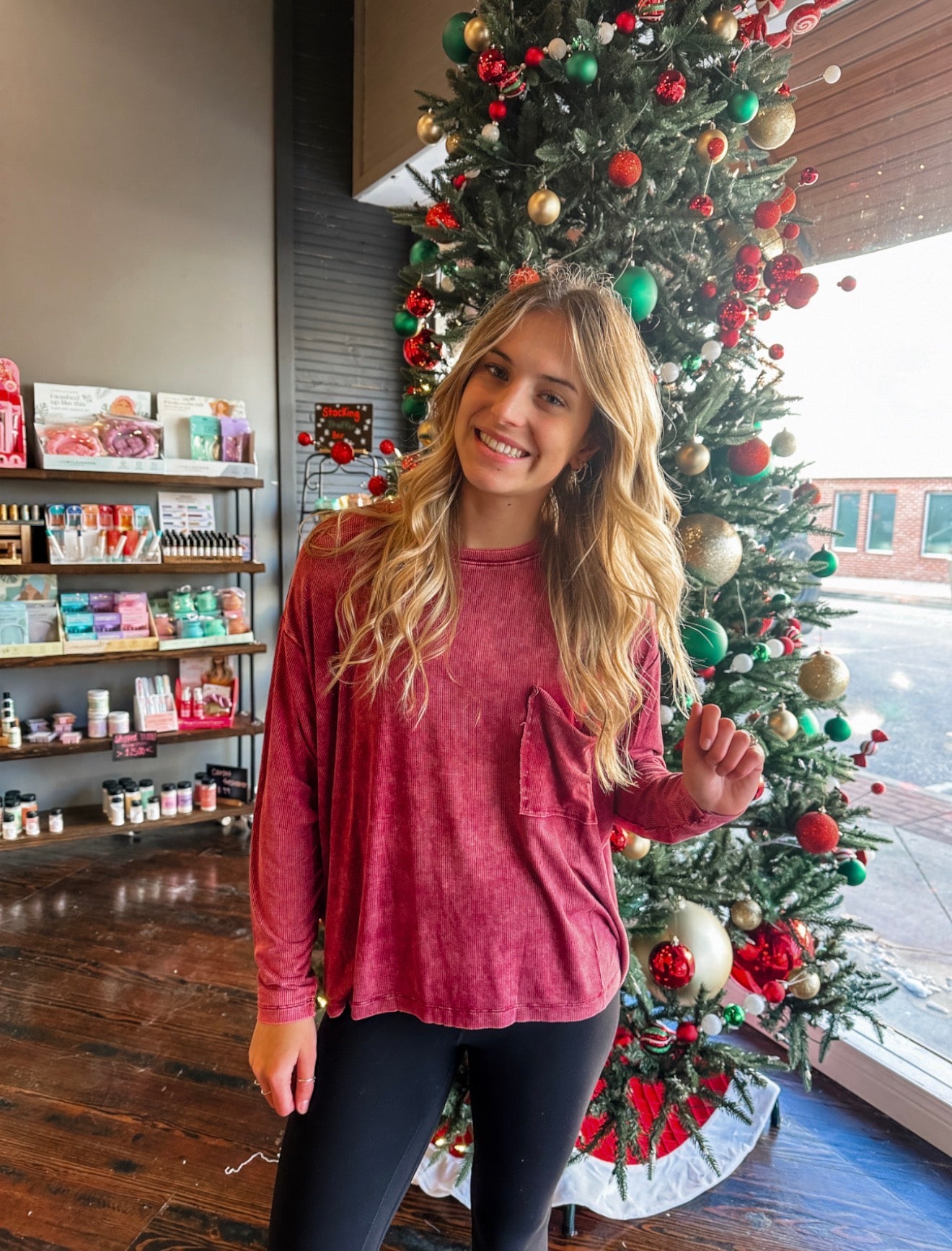 Whether you’re running errands, heading to work, or just wanting something comfy-cute for the day, this tee does it all. The washed finish gives it that effortless, boutique look, and the front pocket adds the perfect little detail.