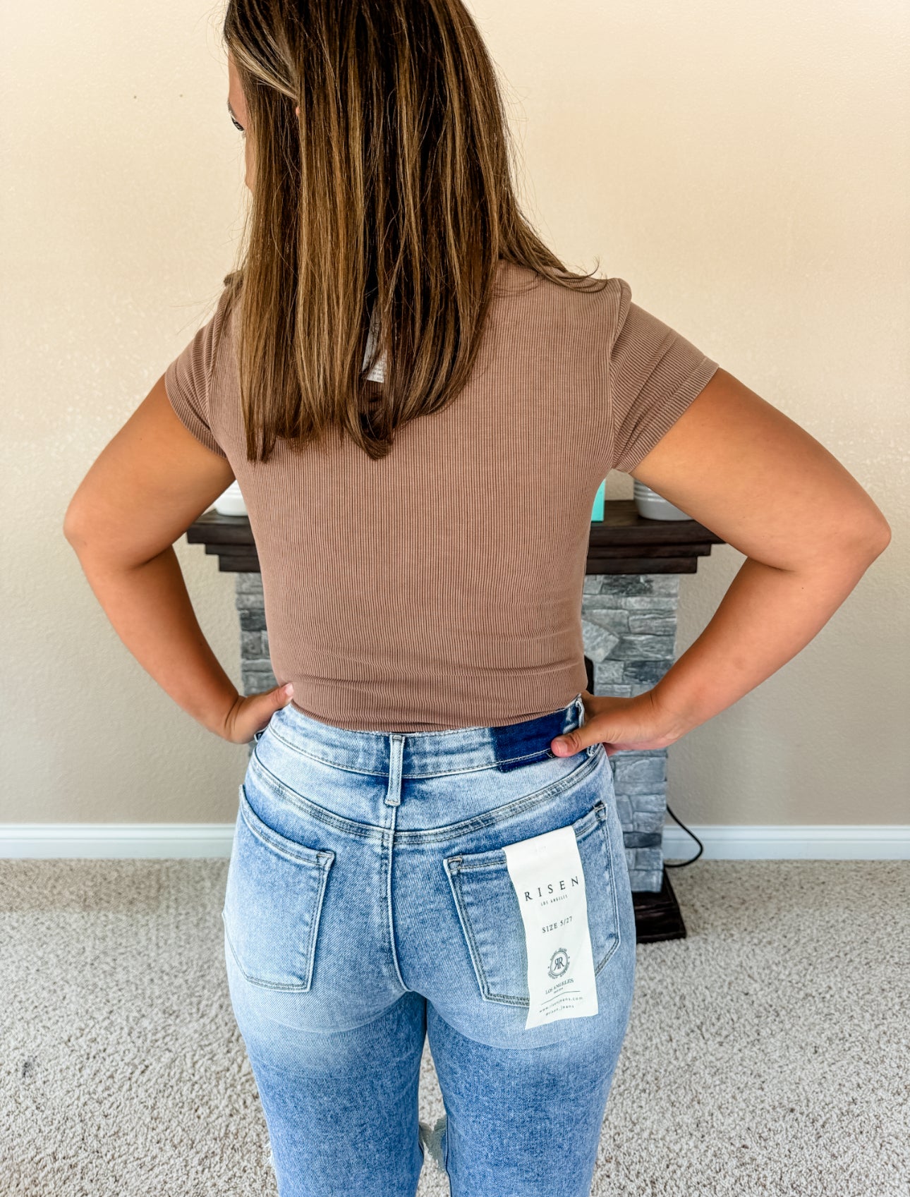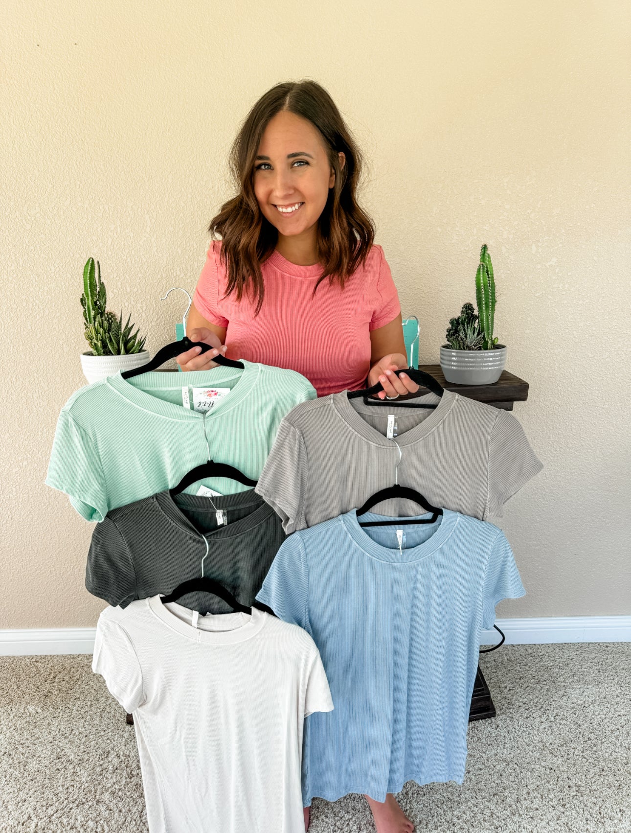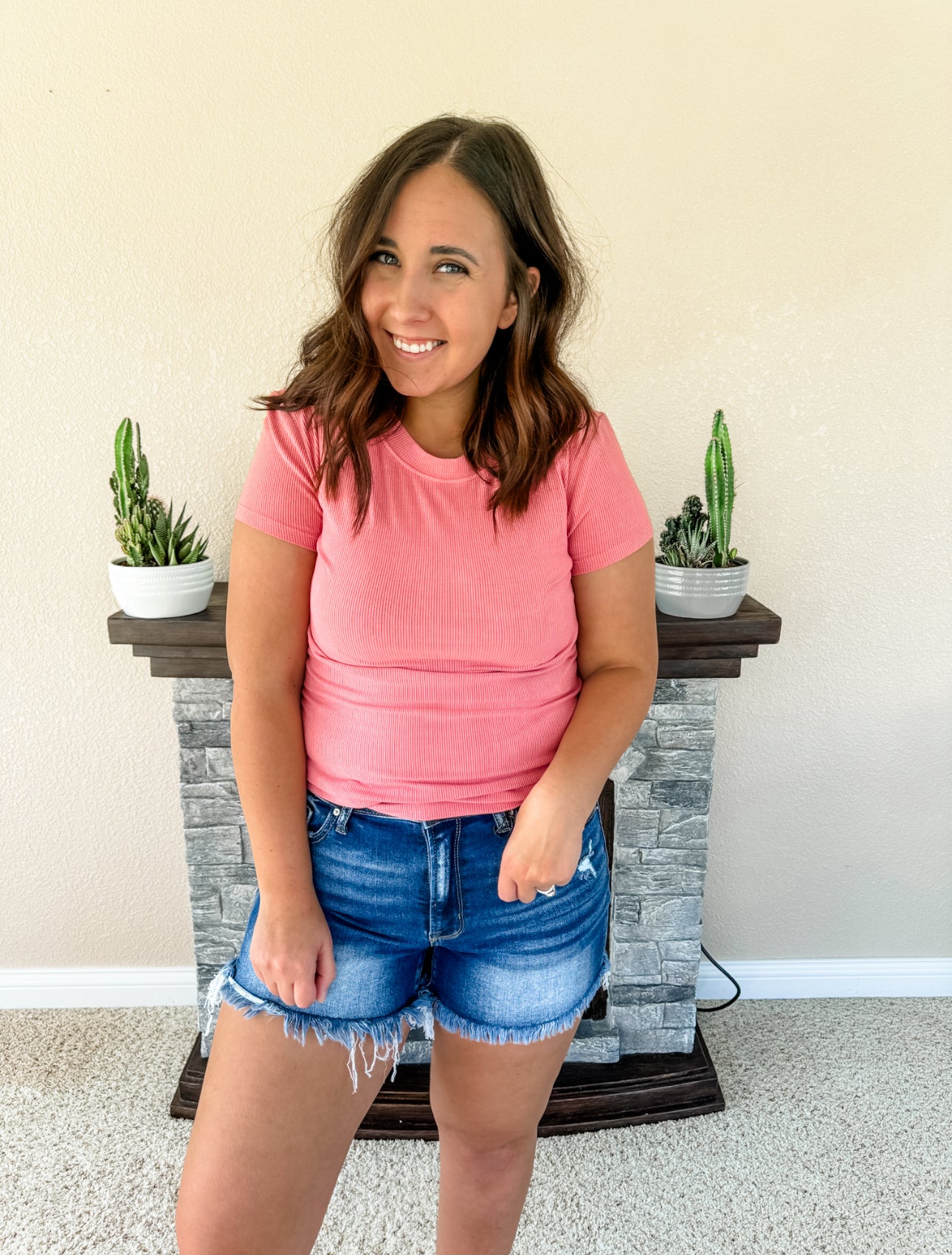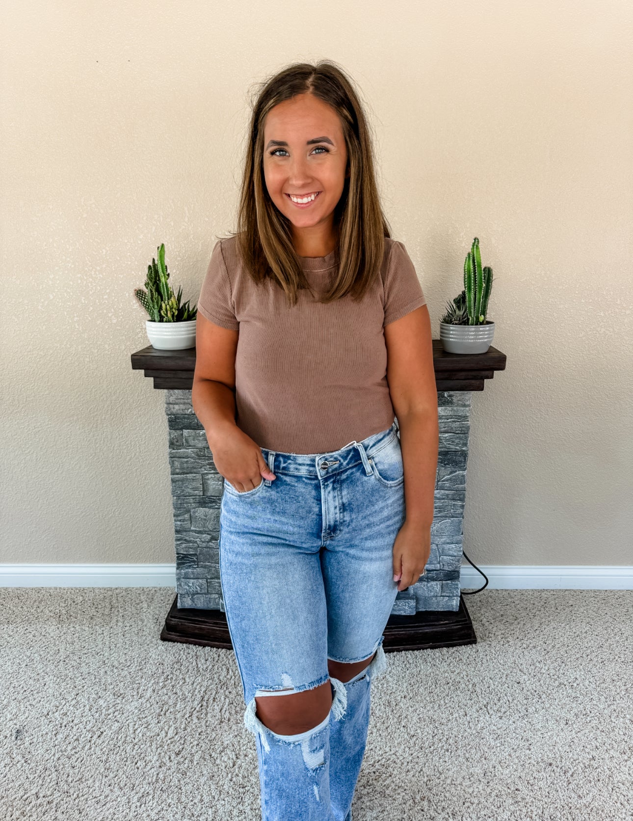 The Classic Ribbed Tee: your new go-to for any occasion. This basic tee is perfect for layering or dressing up or down, making it a versatile addition to your wardrobe. Don't miss out on this timeless style (pun intended)!