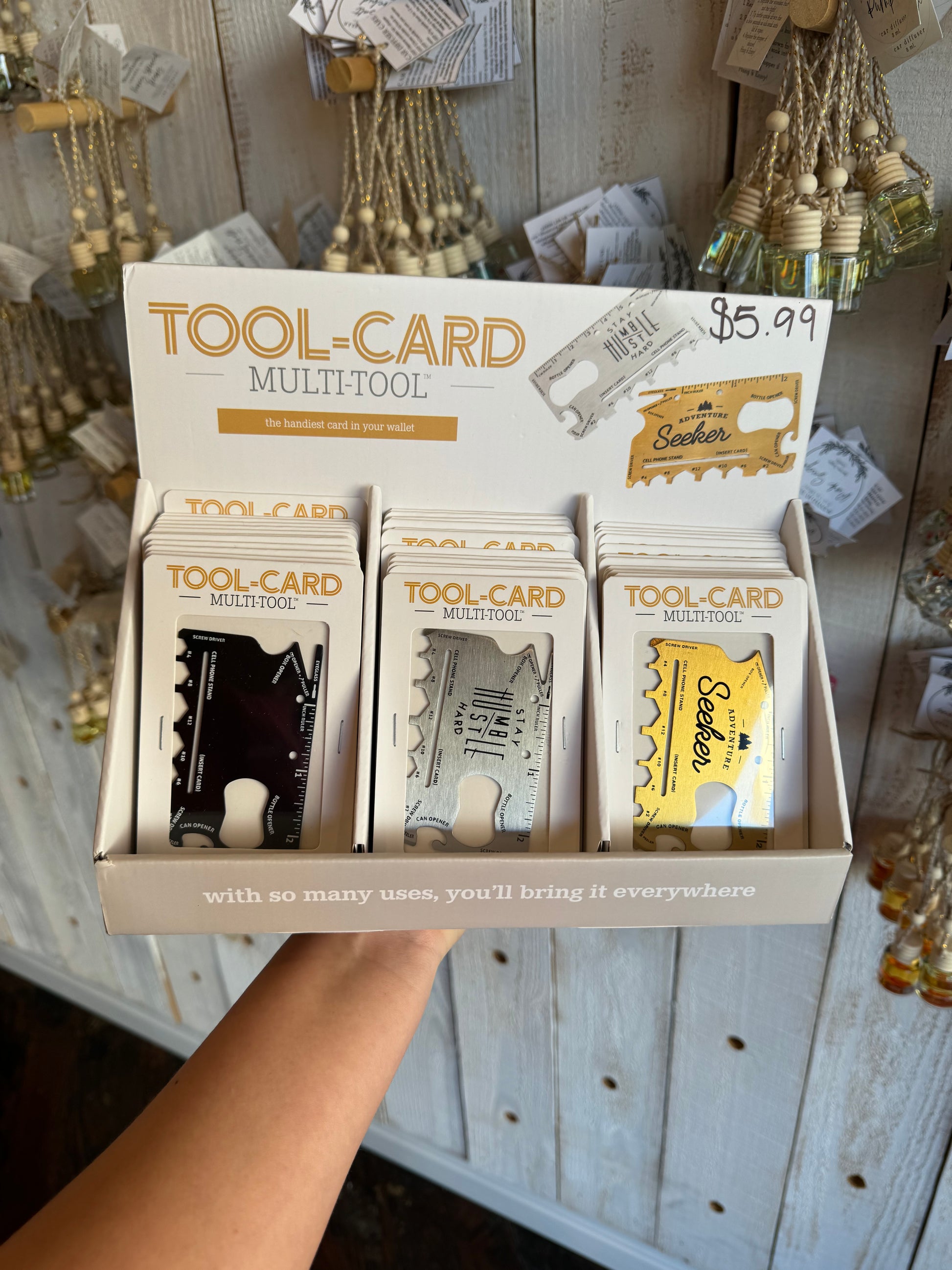 This card will quickly become the handiest card in your wallet! This multi-tool card is made of stainless steel and features: 4 screwdrivers (including one for eyeglasses), can opener, peeler, 6 wrenches, cell phone stand (card required), box opener, letter opener, nail ruler, ruler in both inches and centimeters and a bottle opener!