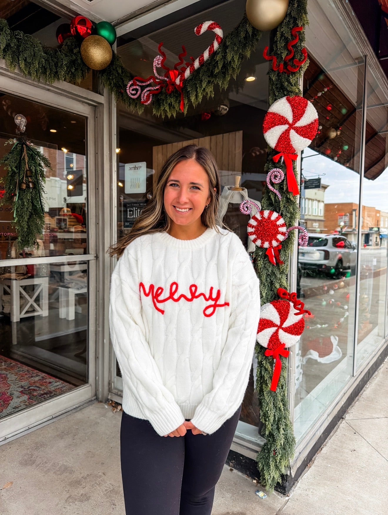 Bring on the cozy cheer with the Twist of Merry Sweater by White Birch — a holiday must-have that blends comfort with festive charm. This soft cable-knit pullover features an eye-catching “Merry” chenille script across the front, giving it that playful, cozy-season personality your wardrobe has been waiting for.