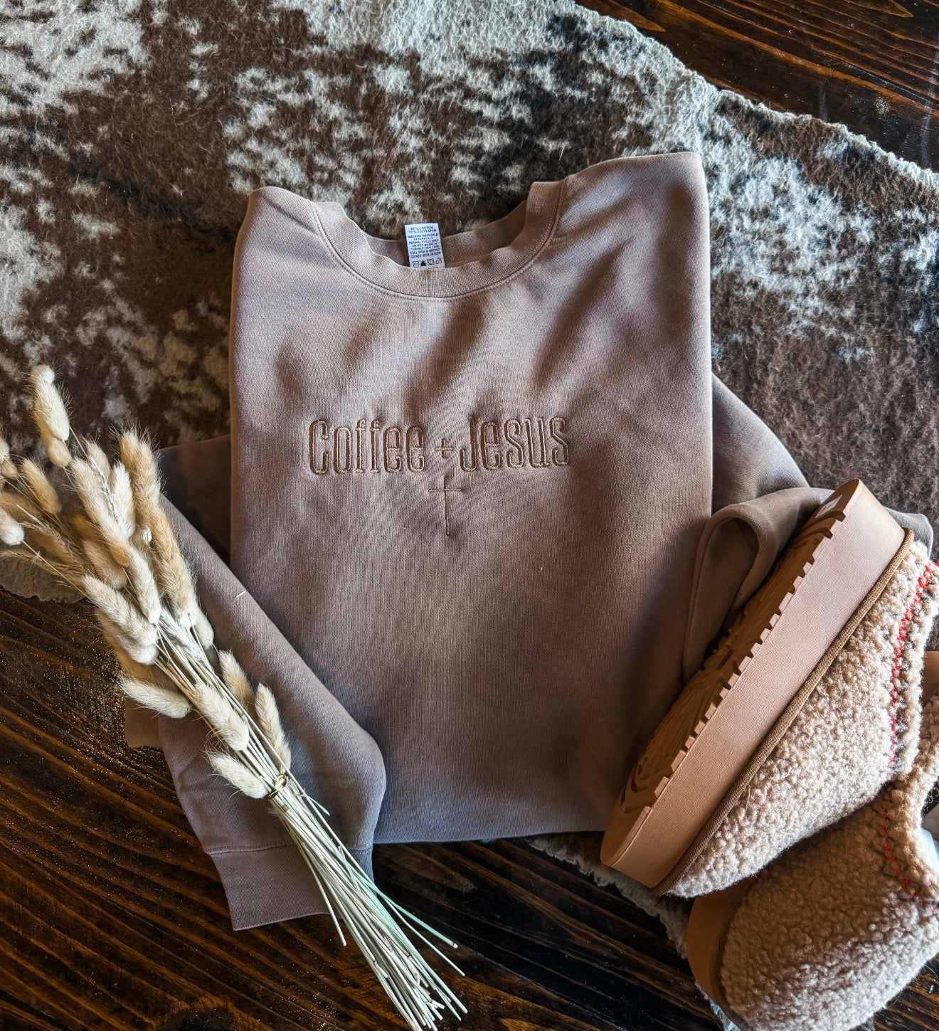 Coffee + Jesus Embroidered Crewneck Sweatshirt