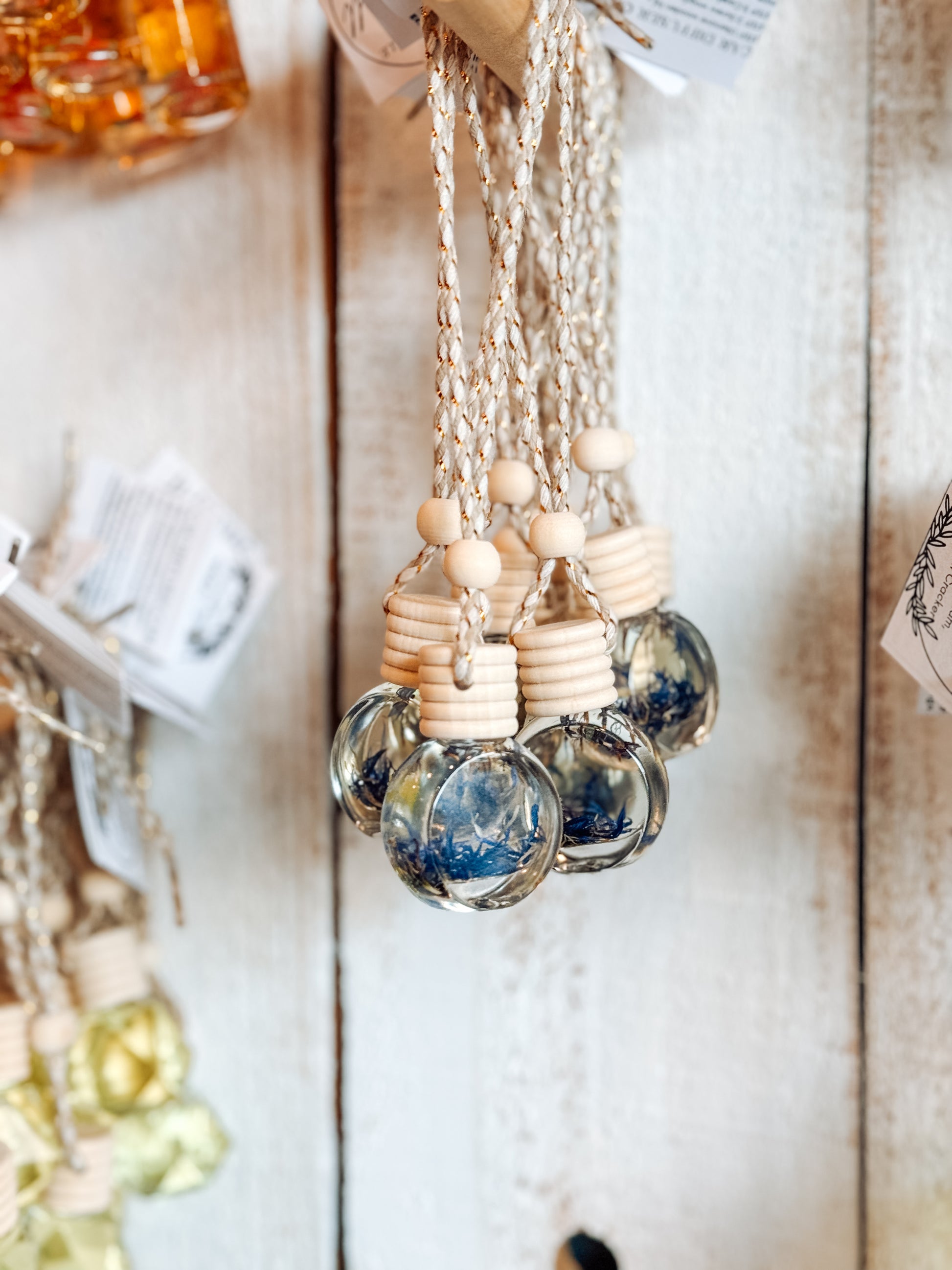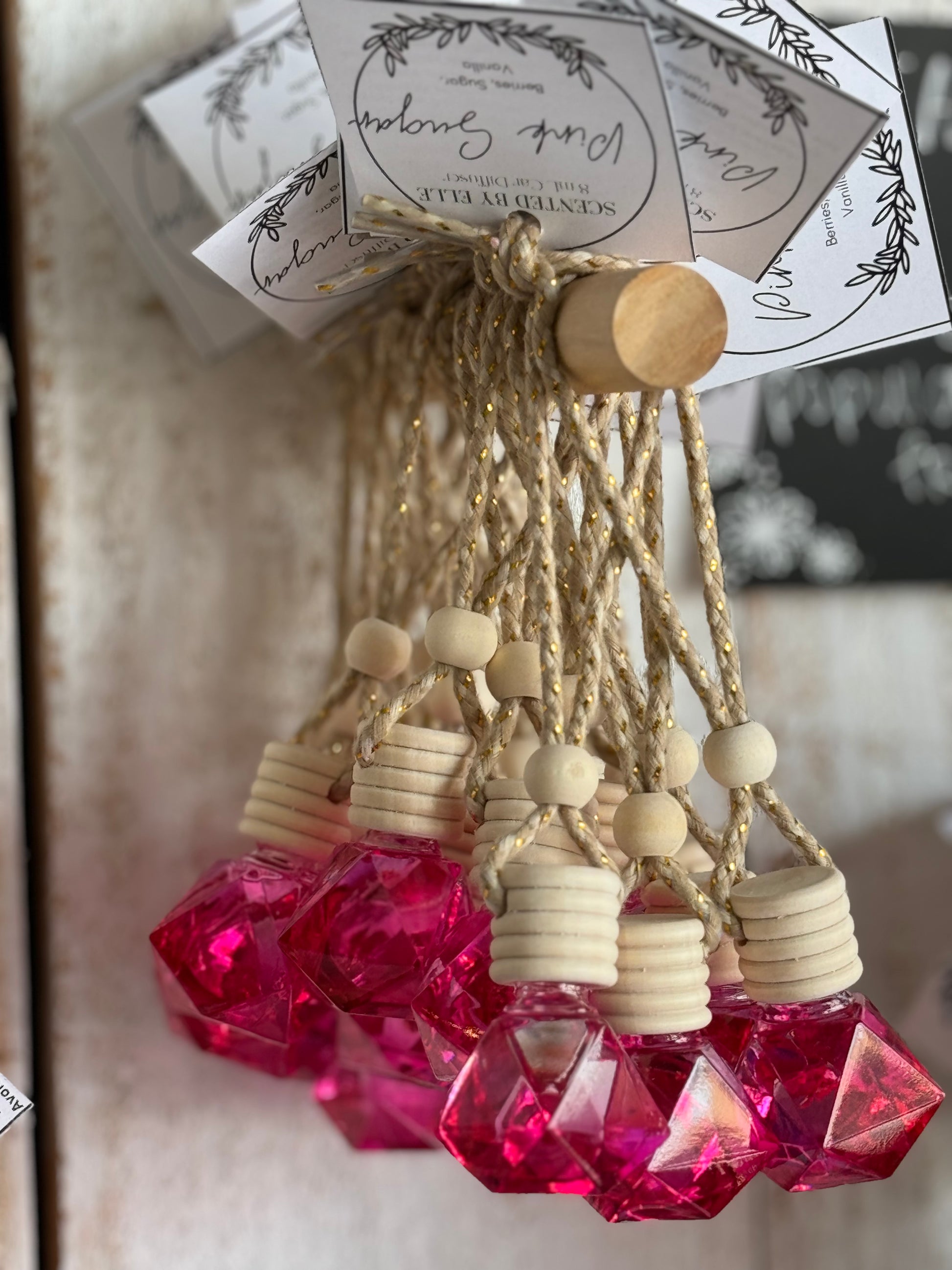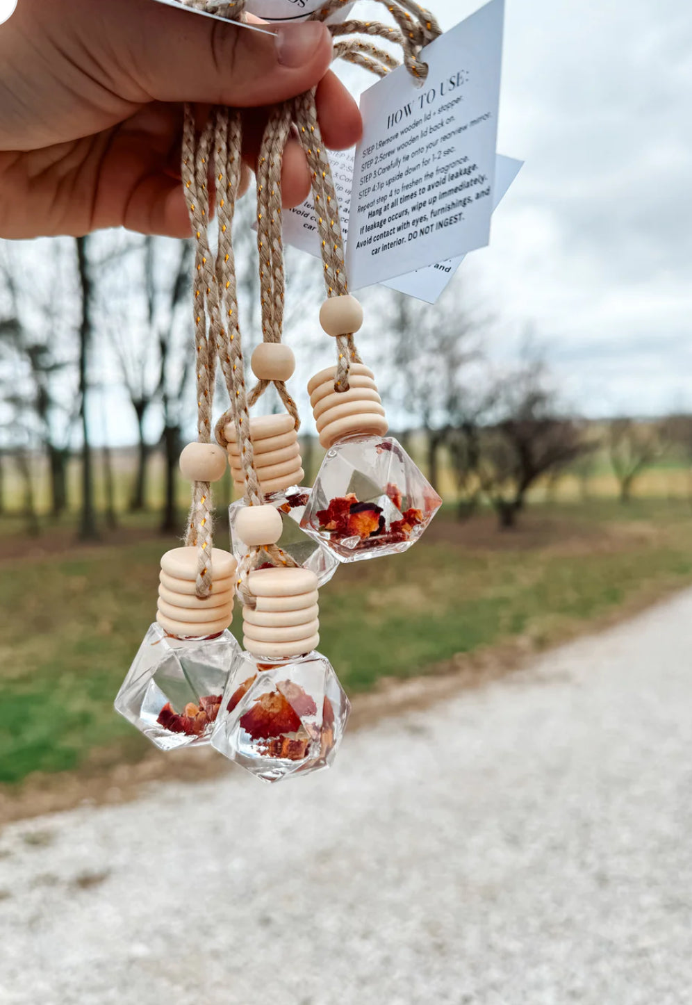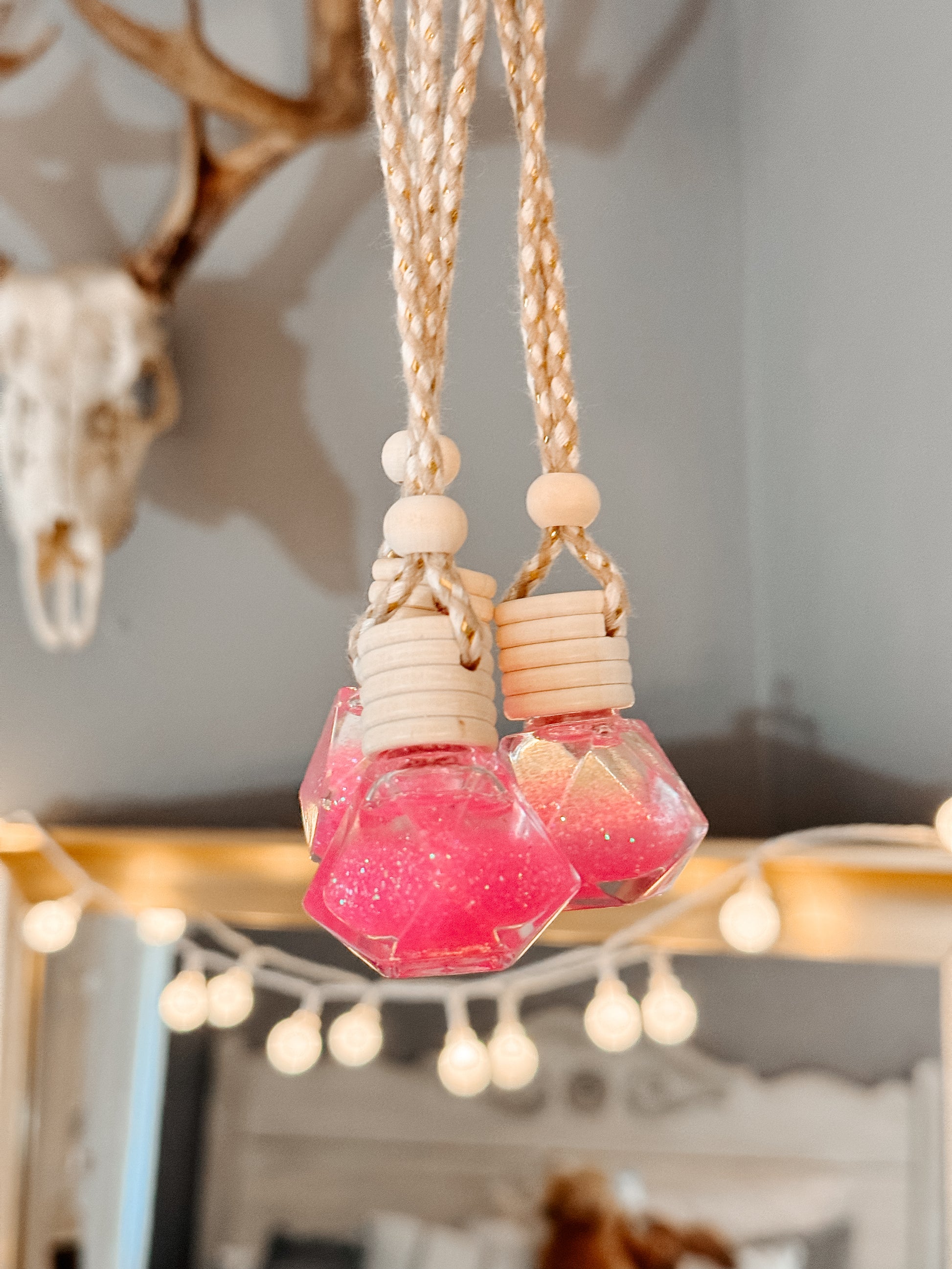 READ: wipe up any spills right away and only use as suggested - hung by the rear view mirror.