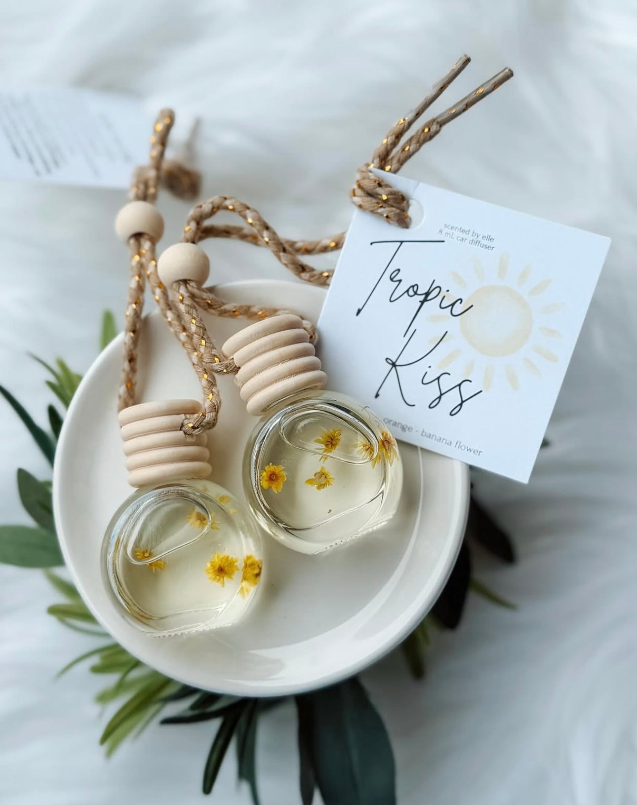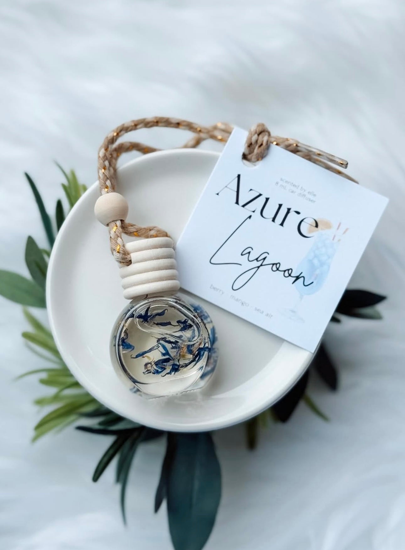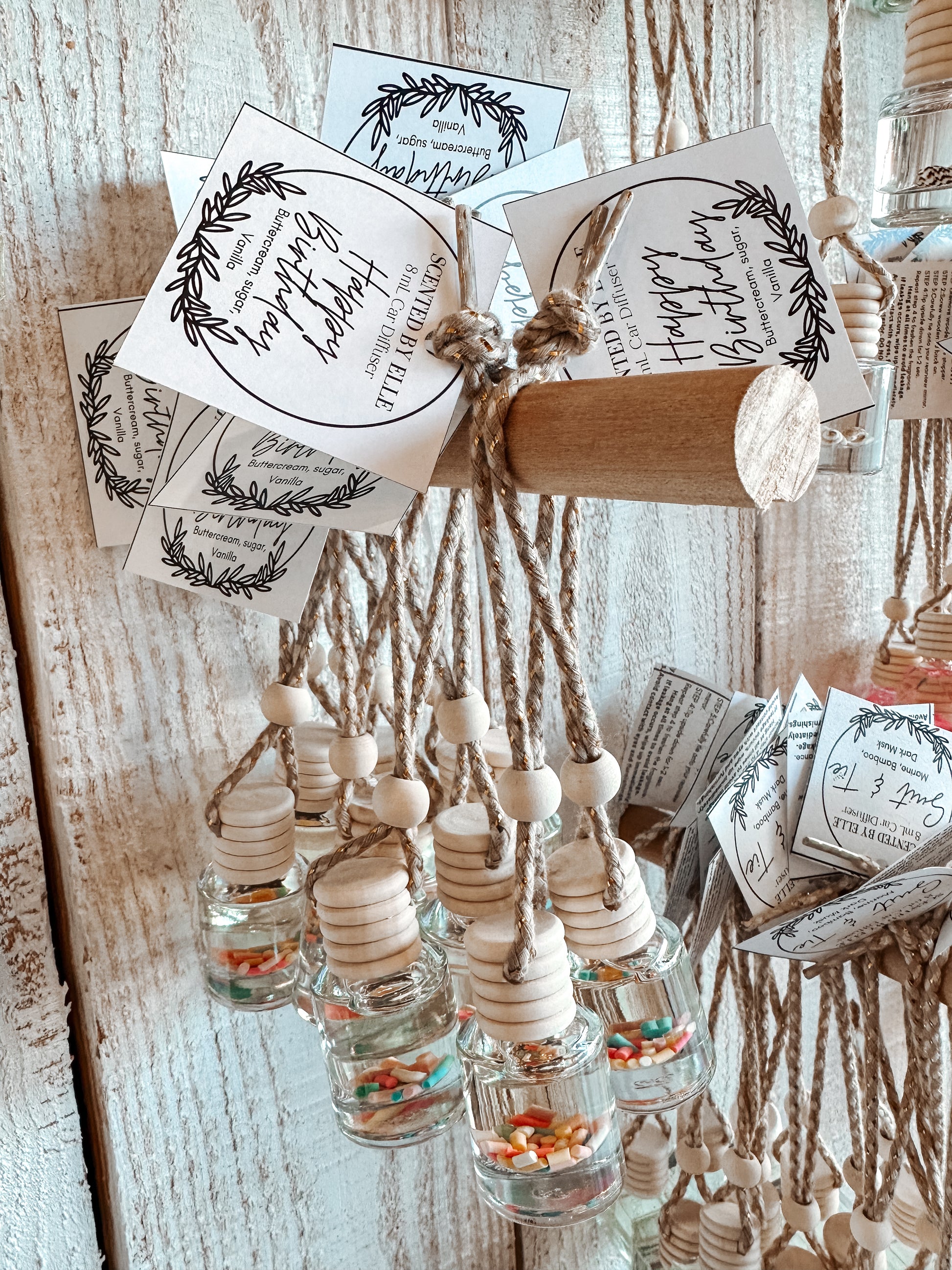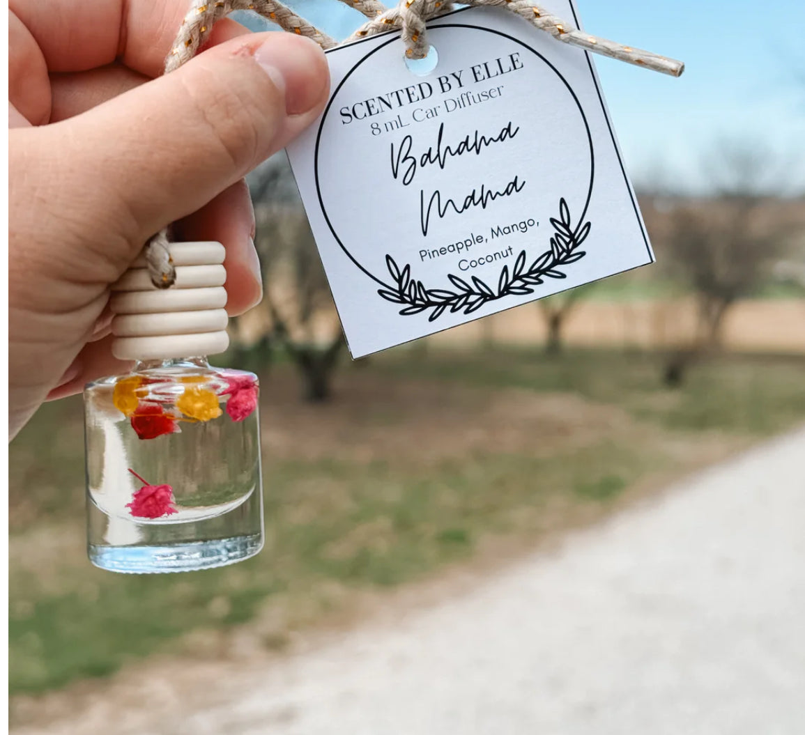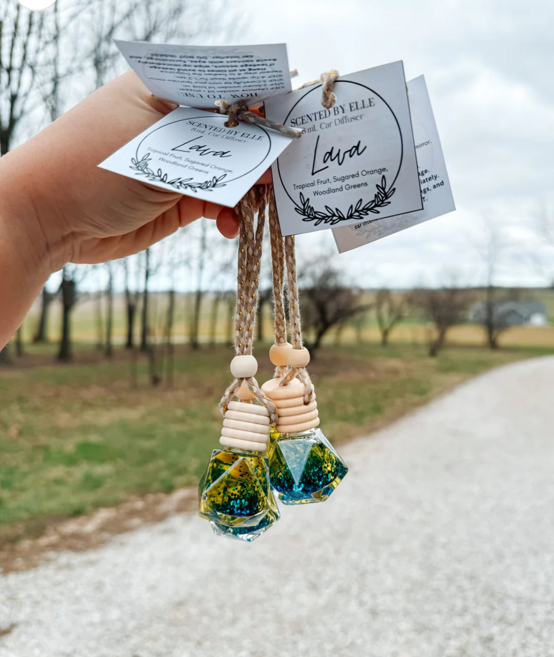 READ: wipe up any spills right away and only use as suggested - hung by the rear view mirror.