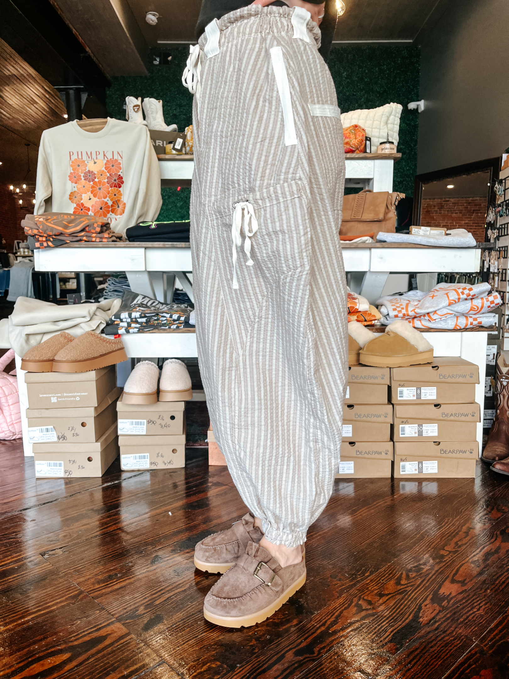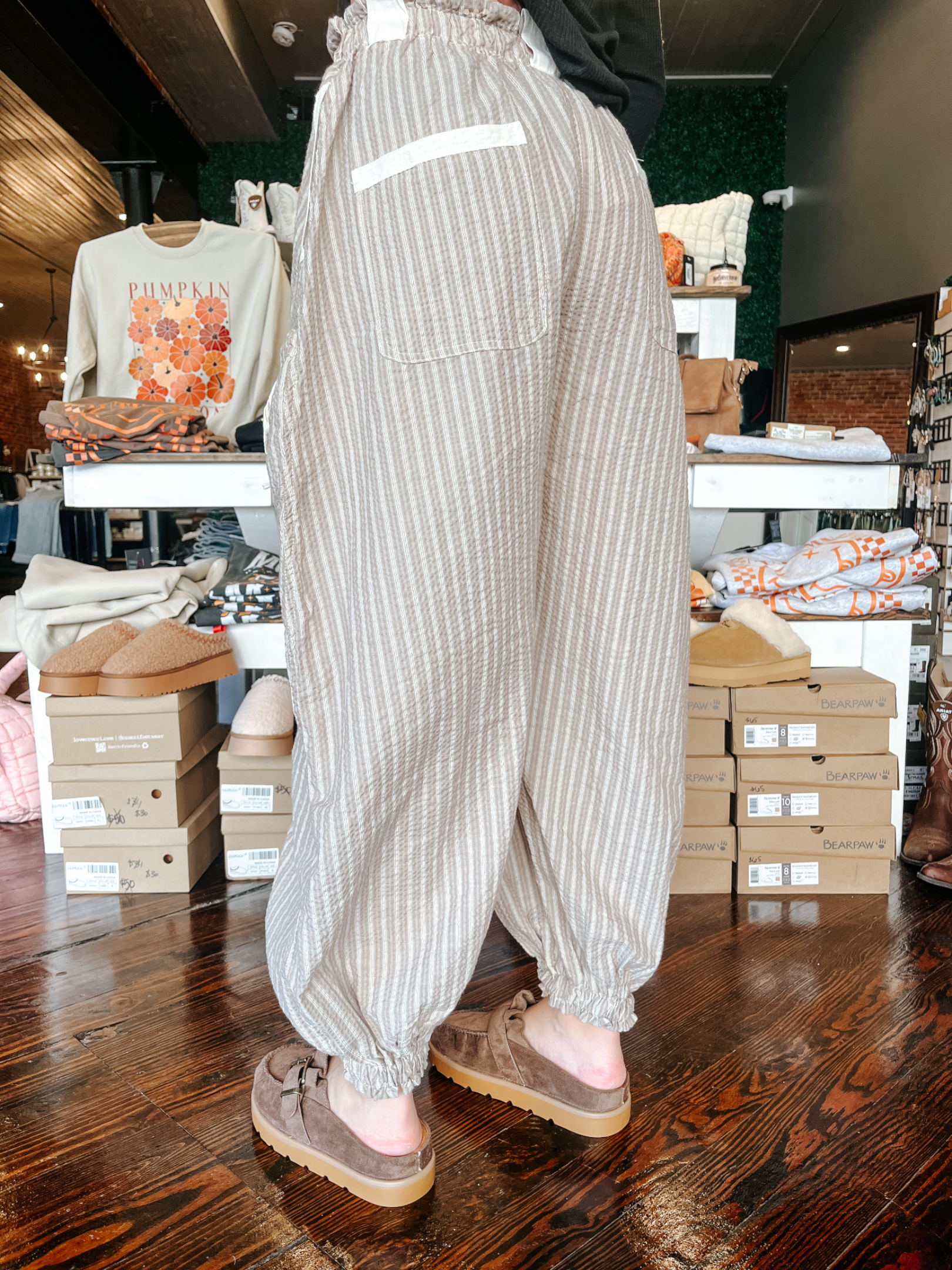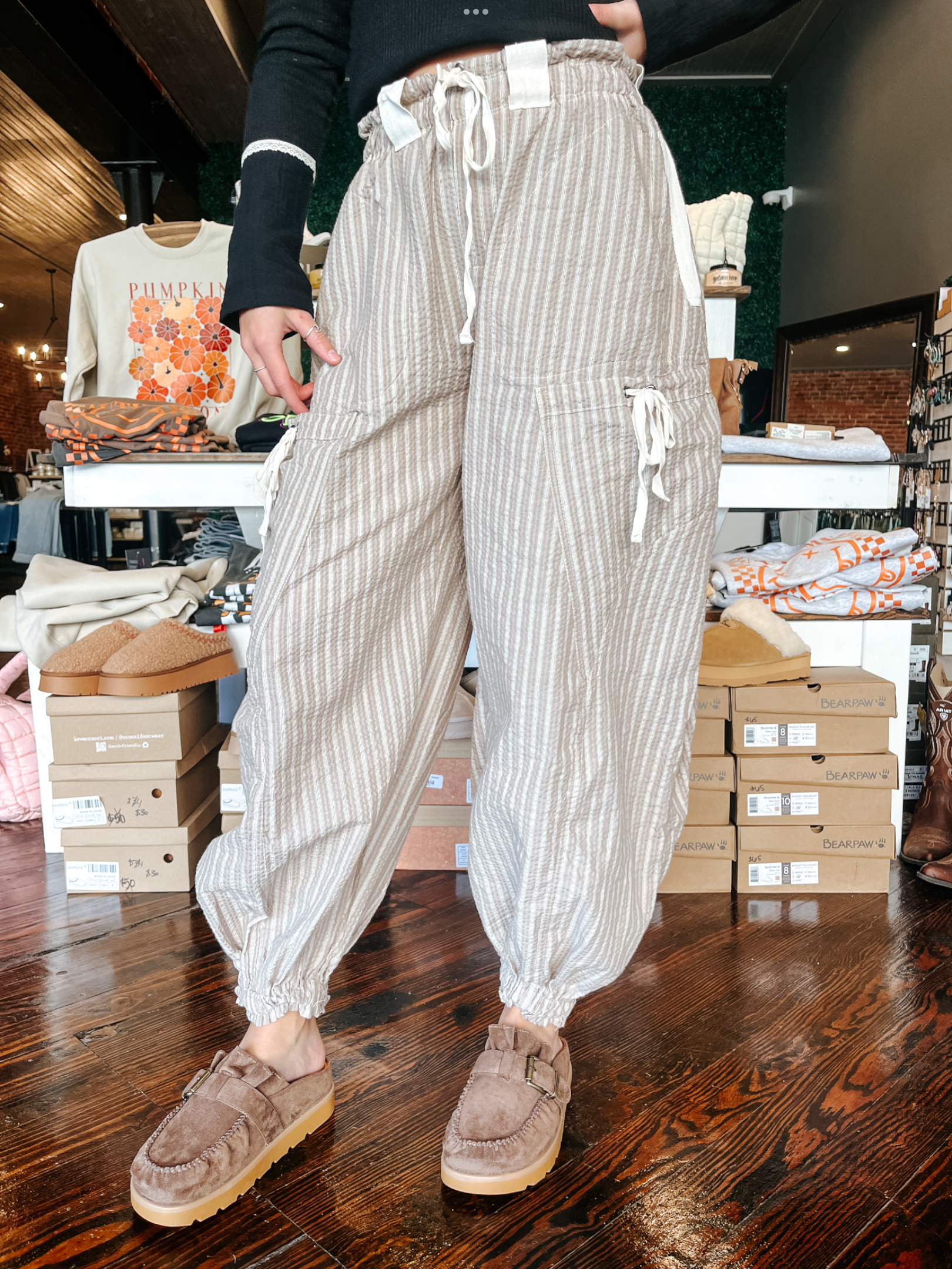 Laid-back meets effortless with these neutral striped joggers 🤎