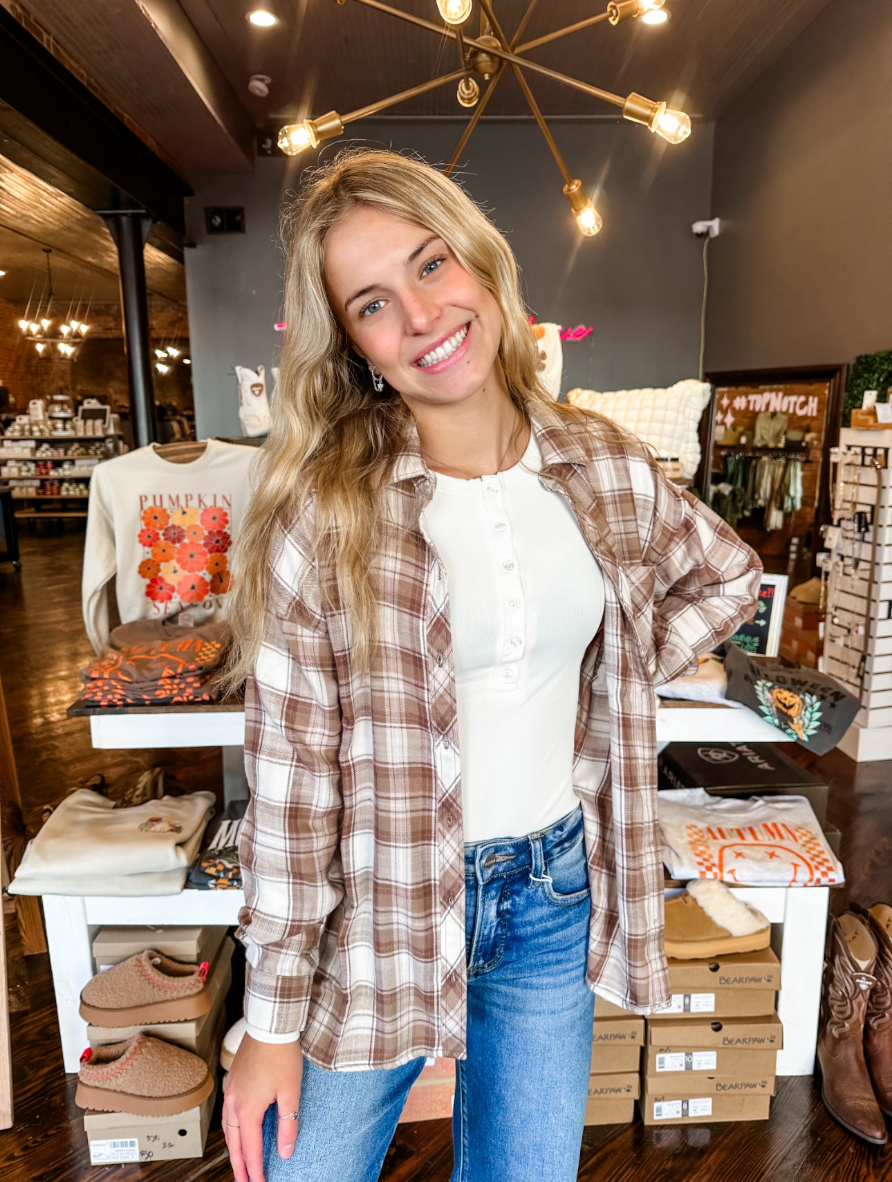 The perfect mix of comfy and cool — the Leave You Wondering Flannel by Be Cool is your go-to layering piece for fall. Made from a soft, lightweight brushed fabric, it drapes beautifully and feels lived-in from day one. Whether you wear it buttoned up or open over a basic tee, this flannel gives that effortless “threw it on and still looked cute” vibe.