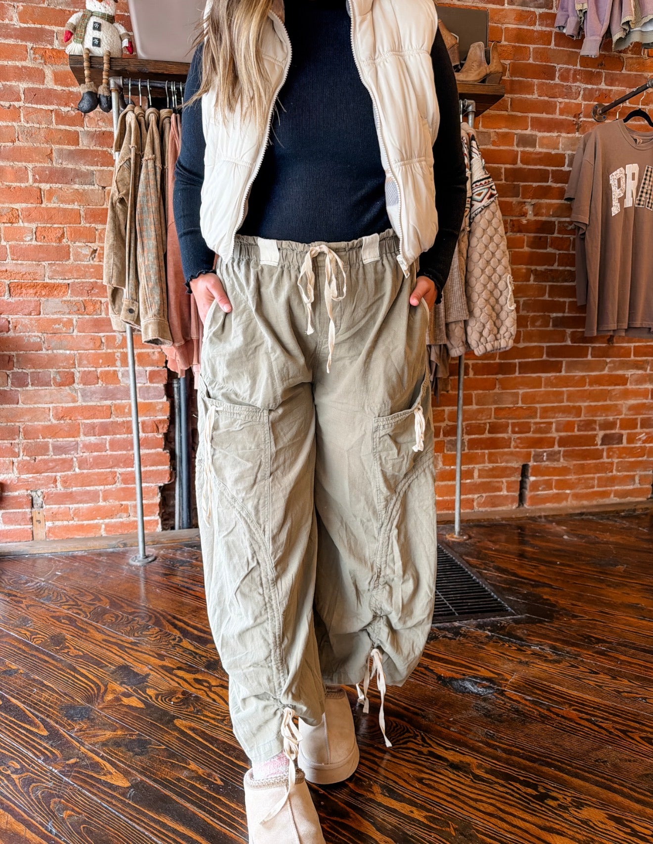 Your go-to for laid-back comfort with an edge. The Mossy Tie Bottoms are crafted from 100% cotton for that soft, lived-in feel and feature adjustable drawstring details at the waist and hem for a perfectly relaxed fit. Pair them with a simple tee or cropped sweater for an effortless, everyday look.
