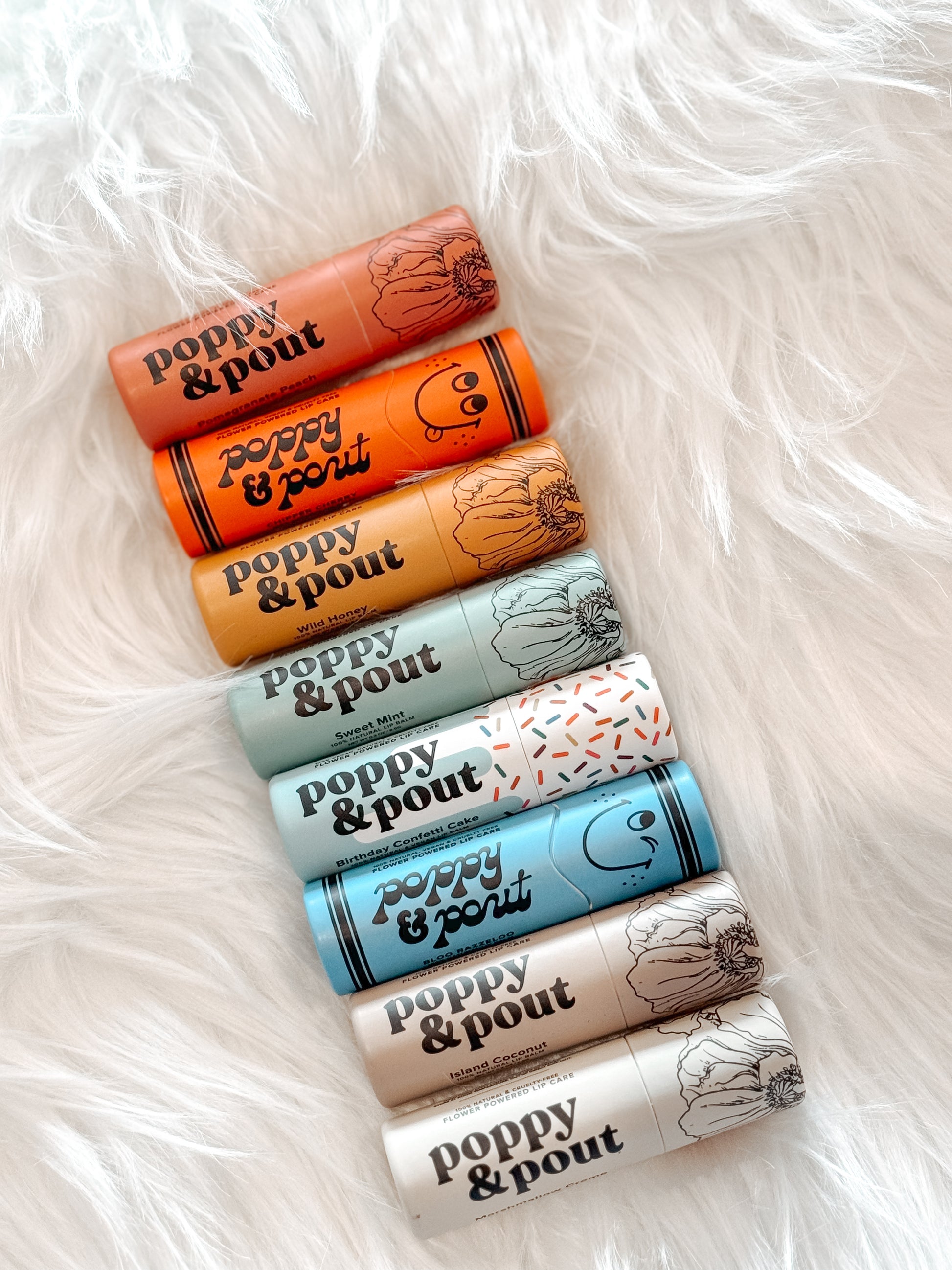 Poppy + Pout natural lip balm formula is as smooth as can be. Each cardboard tube is filled from the bottom to the top with lip hydrating goodness. Ready for more? Gently push up from the bottom to reveal more of your favorite eco-friendly lip balm. Once you’re done, make sure to recycle; our ingredients come straight from Mother Earth, and we like to give right back!