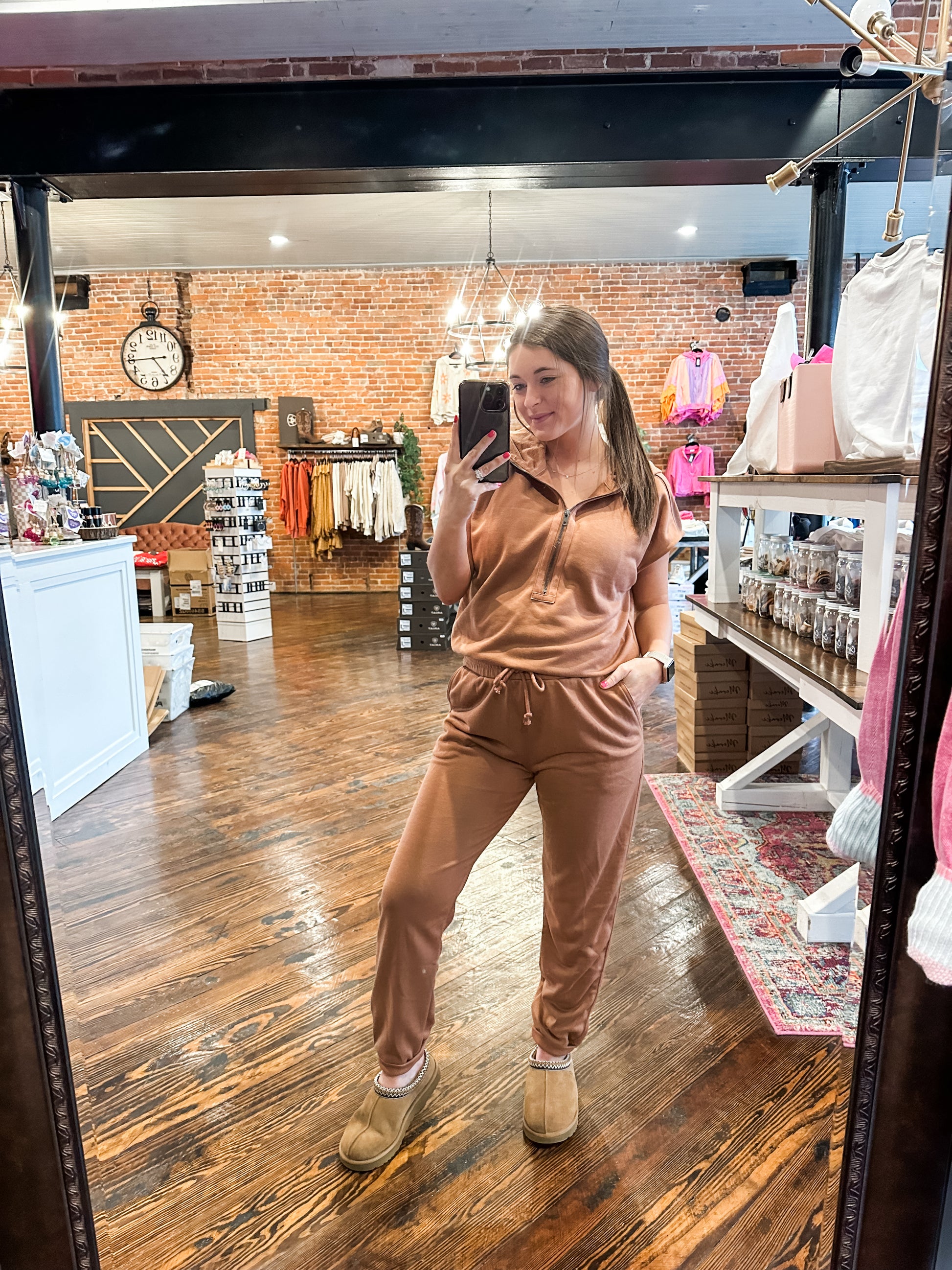 Karina is wearing a size Small. This jumpsuit runs true to size!